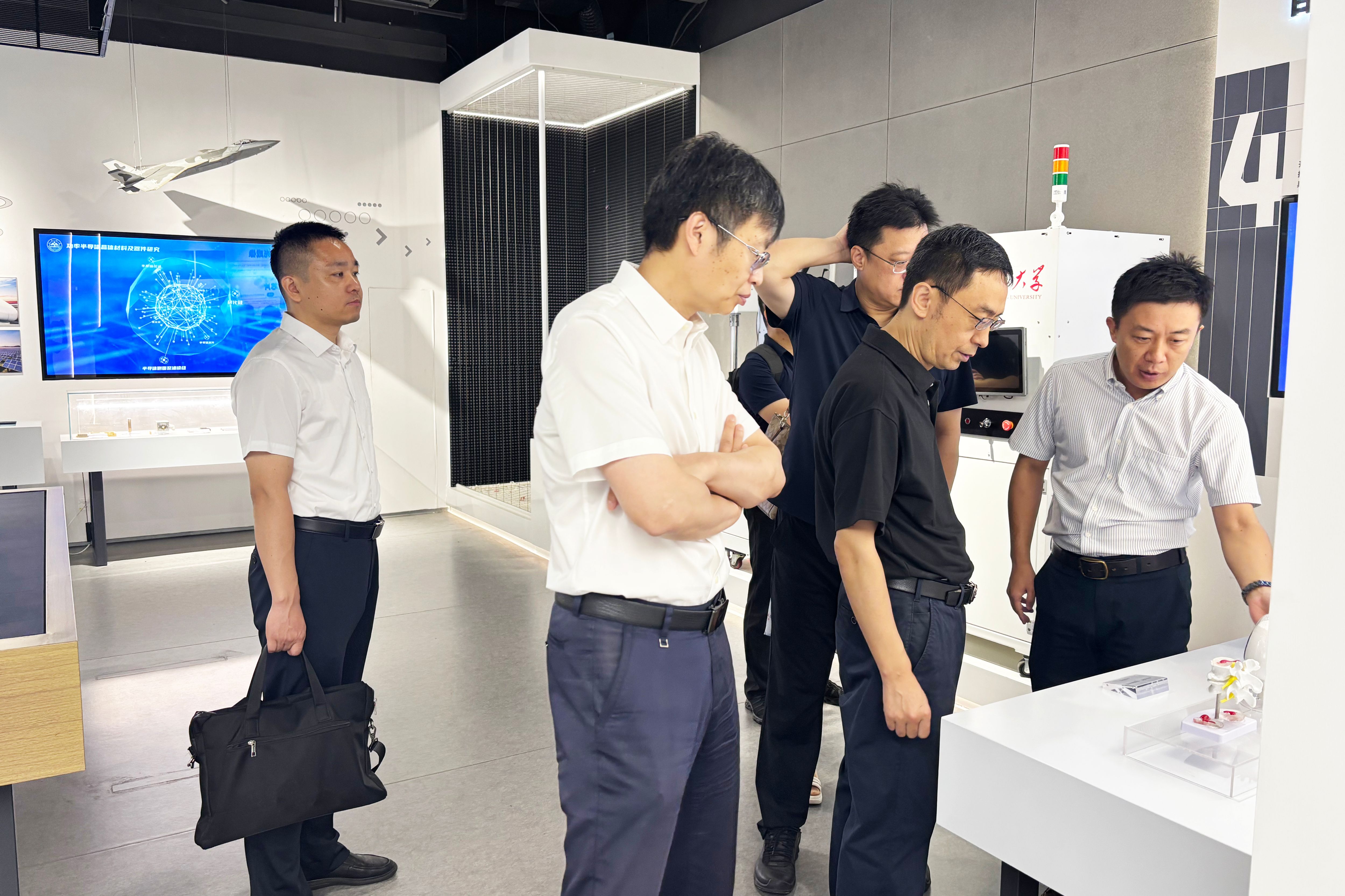 6月24日上午,全省科技人才评价综合改革试点推进会在探花av-探花视频-国产探花 召开。座谈前,科学技术部九司副司长张杰军,山东省科学技术厅副厅长祝恩元一行到访新一代半导体材料集成攻关大平台调研参观,了解平台近年来研发的多种新型半导体材料、取得的重大研究成果及在技术转化和产业化方面的情况。探花av-探花视频-国产探花 人事部部长、人才工作办公室主任刘健陪同参观,集成攻关大平台副主任任颖接待来访。